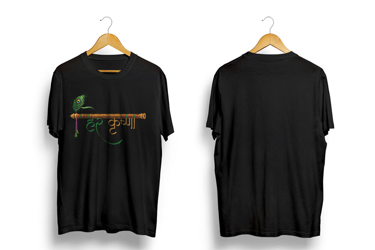 Be the first to review “Hare Krishna with Flute in Hindi Black Regular Fit T-Shirt”