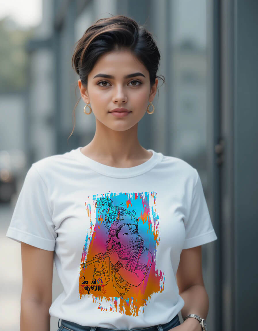 Jai Shree Krishna in Hindi Regular Fit White T-Shirt