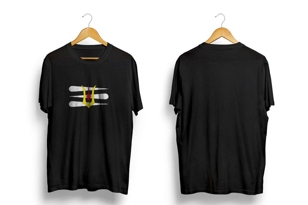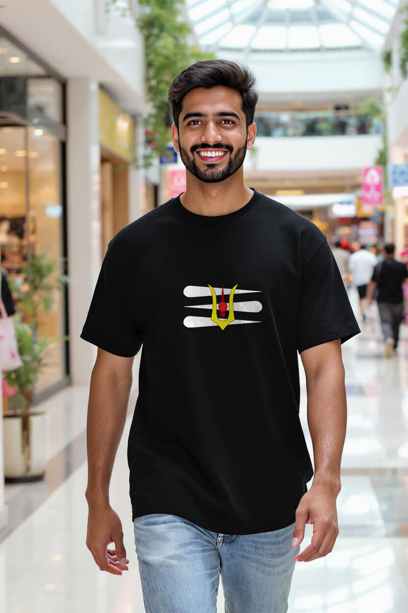Shiva Tilak on black oversized t-shirt